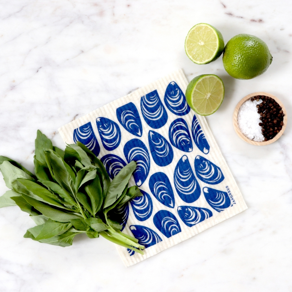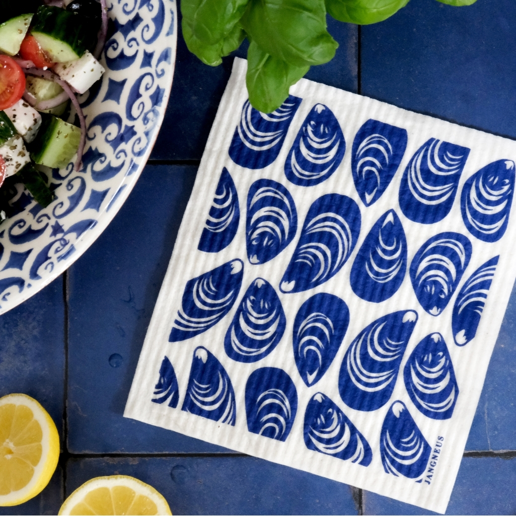 Bring a touch of Scandinavian charm to your kitchen with our stylish and practical dishcloths. Thoughtfully designed with both beauty and sustainability in mind, they offer a simple, eco-friendly way to brighten up everyday cleaning. The blue mussel design brings some seaside vibes to the kitchen.