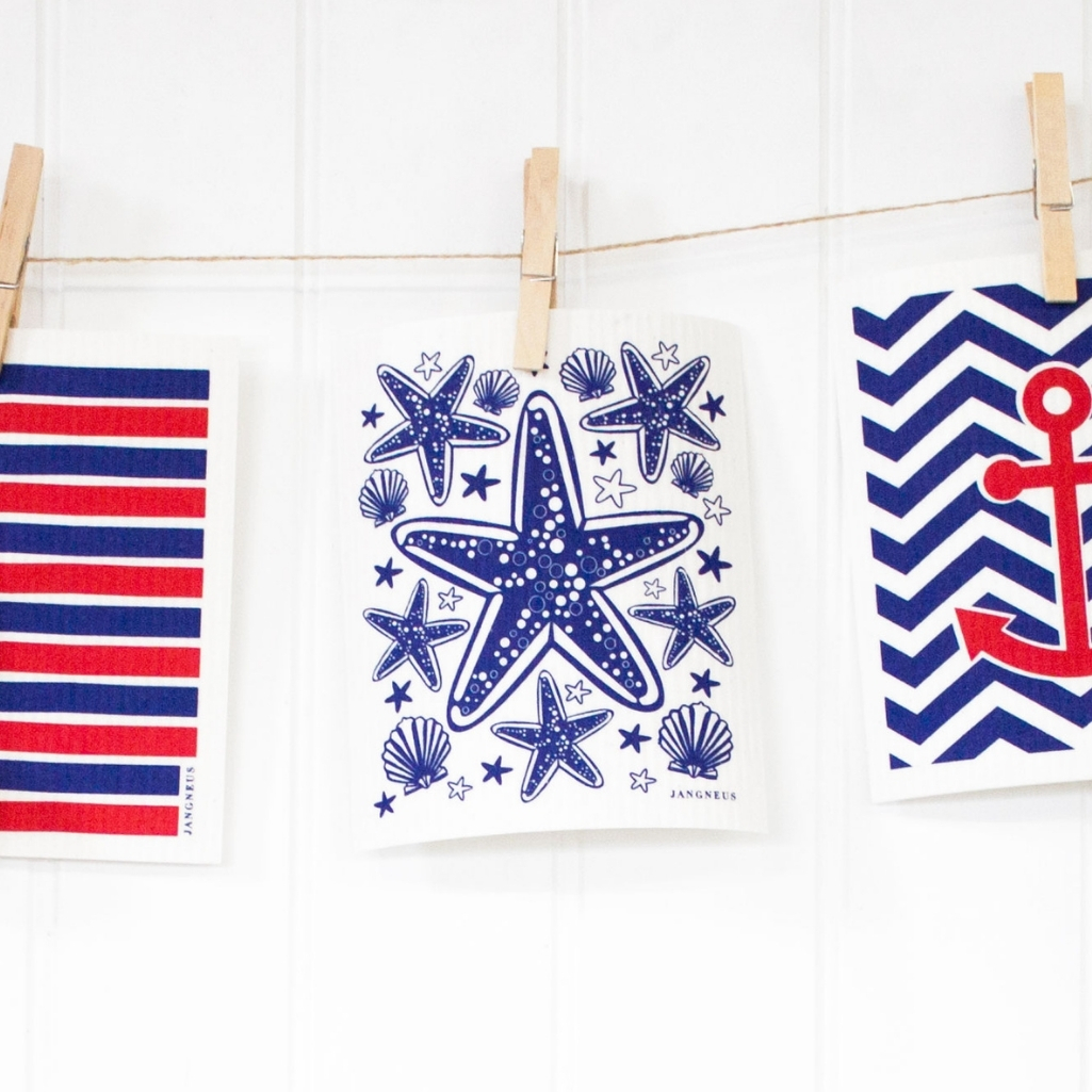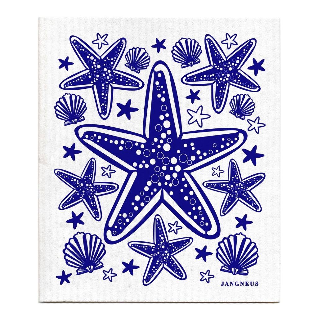 Bring a touch of Scandinavian charm to your kitchen with our stylish and practical dishcloths. Thoughtfully designed with both beauty and sustainability in mind, they offer a simple, eco-friendly way to brighten up everyday cleaning. The blue starfish design brings some seaside vibes to the kitchen.