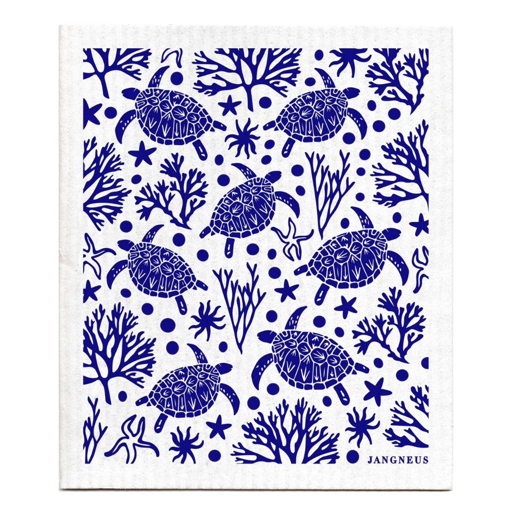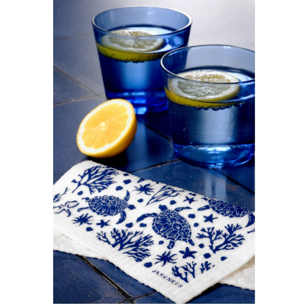 Bring a touch of Scandinavian charm to your kitchen with our stylish and practical dishcloths. Thoughtfully designed with both beauty and sustainability in mind, they offer a simple, eco-friendly way to brighten up everyday cleaning. The blue turtle design brings some seaside vibes to the kitchen.