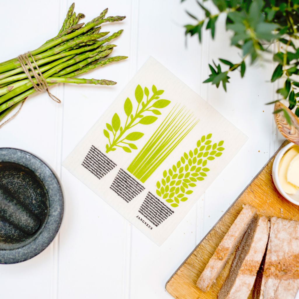 Eco-Friendly Swedish Dishcloth – Green Herbs Design