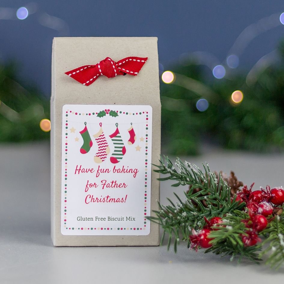 The Chistmas stocking themed box contains all the dry ingredients perfectly measured to effortlessly make delicious gluten free shortbread biscuits. To make it extra special, you can even personalise the biscuit mix box with a message such as “Holly’s Christmas Eve Biscuits”.