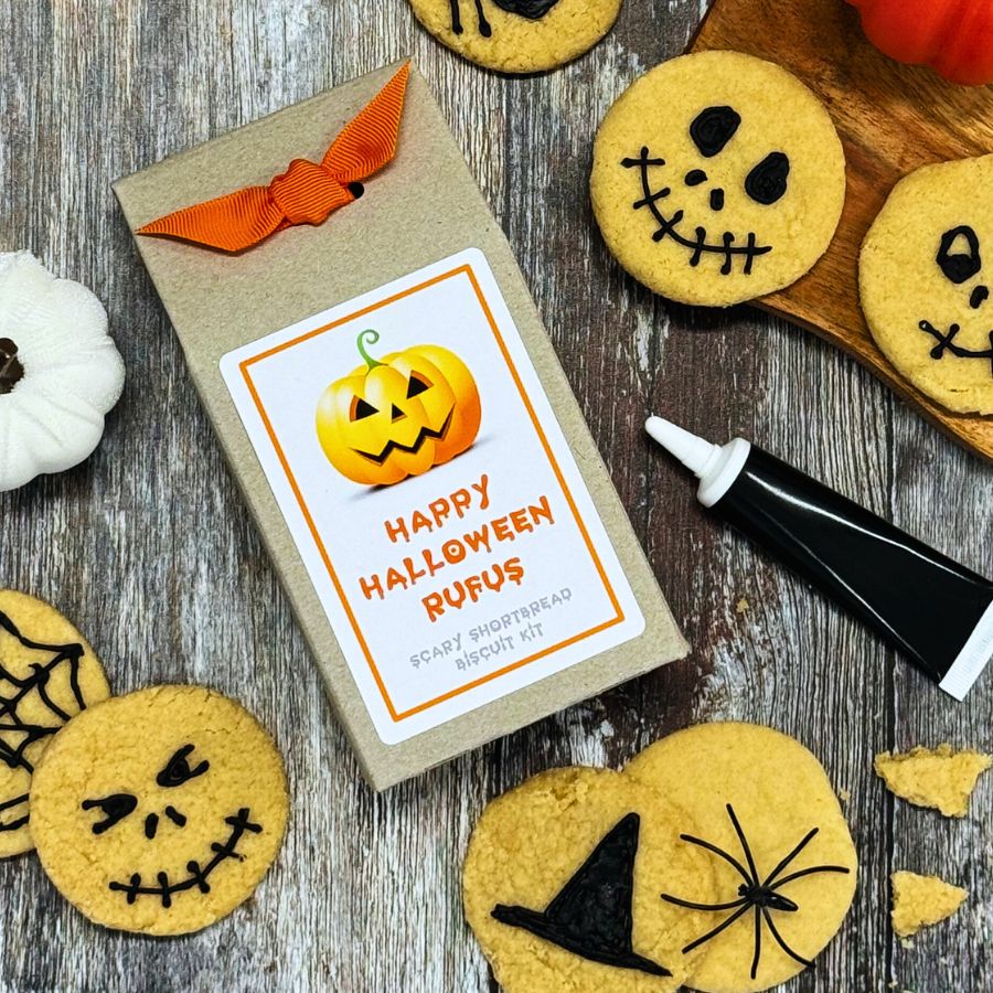 This personalised Halloween Spooky Shortbread Baking Kit has everything to make and decorate delicious spooky shortbread biscuits.
